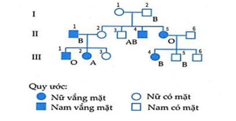 Hỏi trong gia đình nạn nhân nên đưa ai đi truyền máu cho cụ bà (số I.1 trong phả hệ) là thích hợp và nhanh