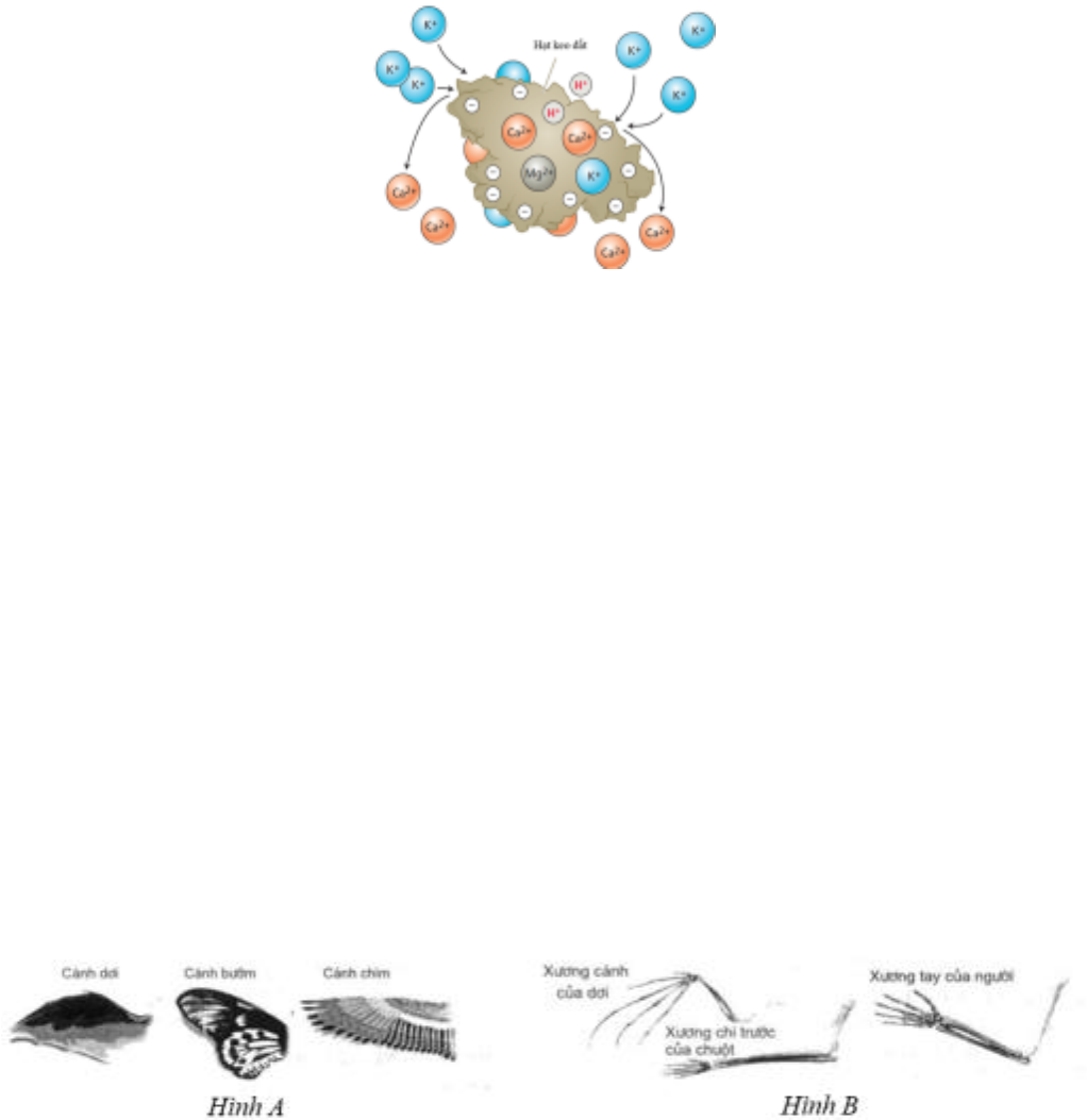 Câu 3: Hình bên dưới mô tả cơ chế trao đổi cation trên bề mặt hạt keo đất. Bề mặt hạt keo mang điện tích