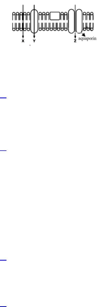 Câu 4. Hình dưới đây mô tả các con đường vận chuyển các chất qua màng tế bào (X, Y, Z).