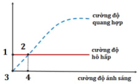 hợp của một loài thực vật. Điểm nào trong các điểm 1,2,3,4 trên đồ thị biểu thị điểm bù ánh sáng của loài