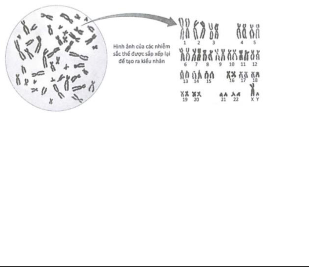 Câu 13. Hình bên dưới mô tả bộ NST của một người và các NST được sắp xếp lại để lập sơ đồ kiểu nhân.