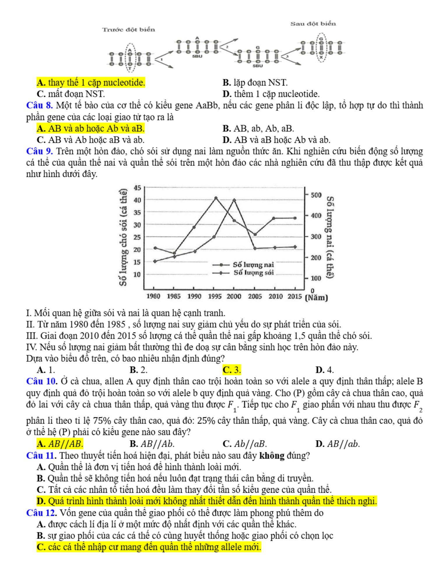 Đề thi thử tốt nghiệp THPT Quốc gia 2025 môn Sinh học trường THPT Cao Thắng, Huế có đáp án được VnDoc.com tổng hợp và xin gửi tới bạn đọc cùng tham khảo. Đề thi gồm có 18 câu hỏi trắc nghiệm nhiều phương án lựa chọn, 4 câu hỏi trắc nghiệm đúng sai và 6 câu hỏi trắc nghiệm trả lời ngắn. Thí sinh làm bài trong thời gian 50 phút. Đề có đáp án kèm theo. Mời các bạn cùng theo dõi chi tiết đề thi dưới đây để có thêm tài liệu ôn thi kì Thi THPT Quốc gia sắp tới nhé.