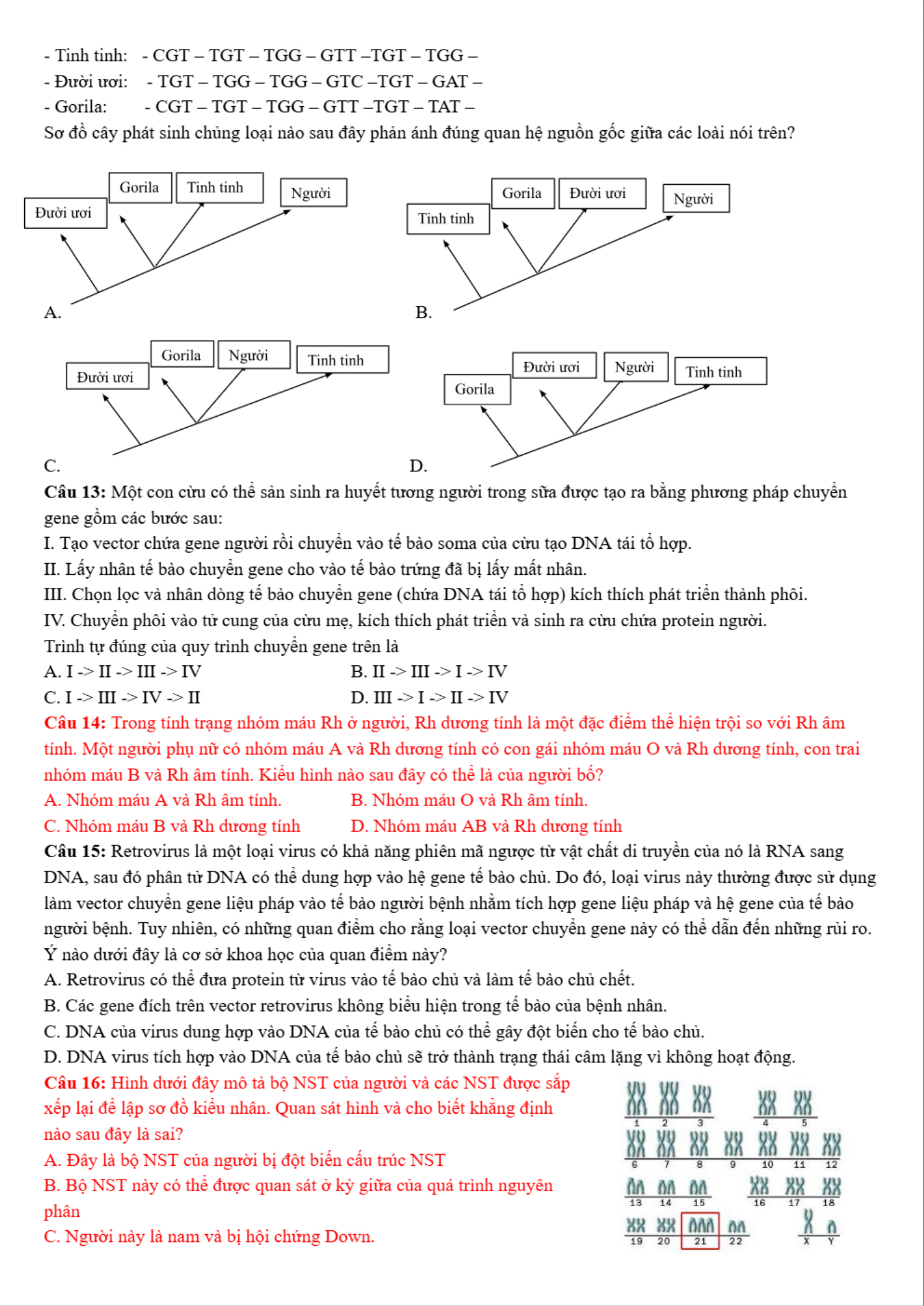 Đề thi thử tốt nghiệp môn Sinh trường Đặng Trần Côn, Huế
