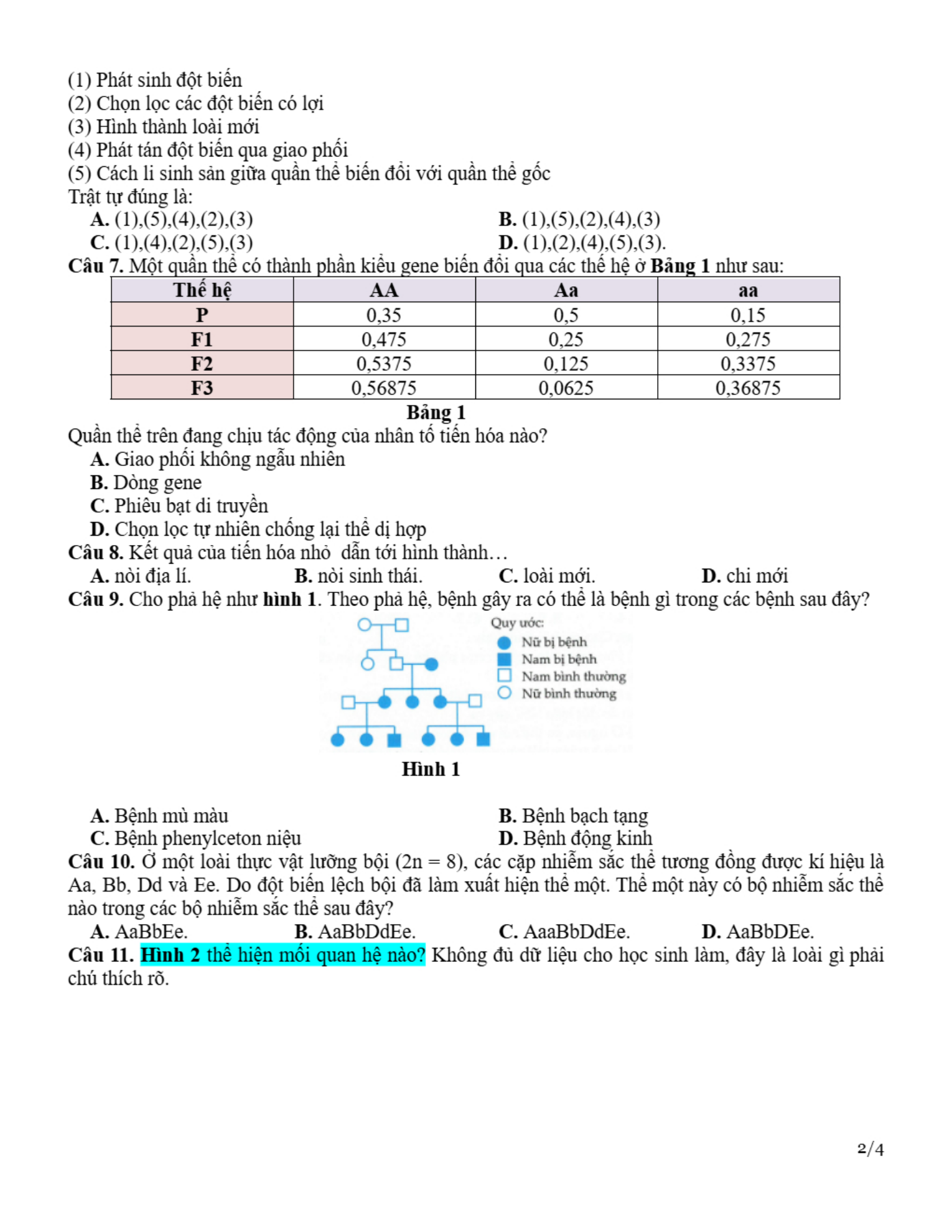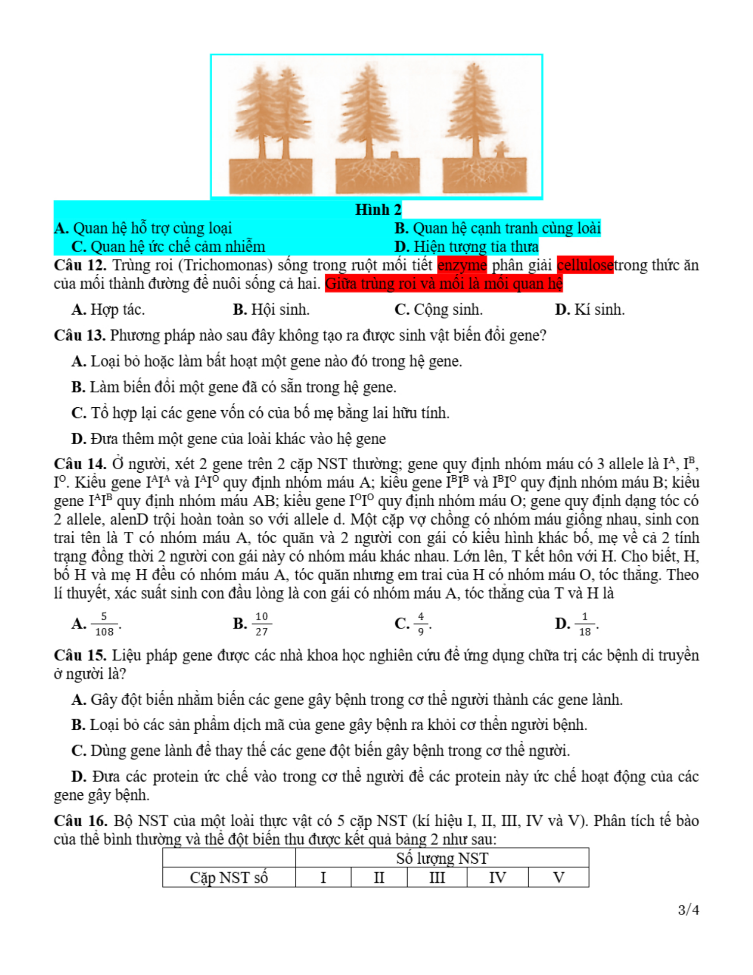 VnDoc.com xin gửi tới bạn đọc bài viết Đề thi thử tốt nghiệp THPT Quốc gia 2025 môn Sinh học trường THPT Hóa Châu, Huế có đáp án để bạn đọc cùng tham khảo. Đề thi được biên soạn theo cấu trúc đề thi mới. Đề thi gồm có 18 câu hỏi trắc nghiệm nhiều phương án lựa chọn, 4 câu hỏi trắc nghiệm đúng sai và 6 câu hỏi trắc nghiệm trả lời ngắn. Thí sinh làm bài trong thời gian 50 phút. Đề có đáp án và lời giải chi tiết kèm theo. Mời các bạn cùng theo dõi chi tiết đề thi dưới đây để có thêm tài liệu ôn thi kì Thi THPT Quốc gia sắp tới nhé.