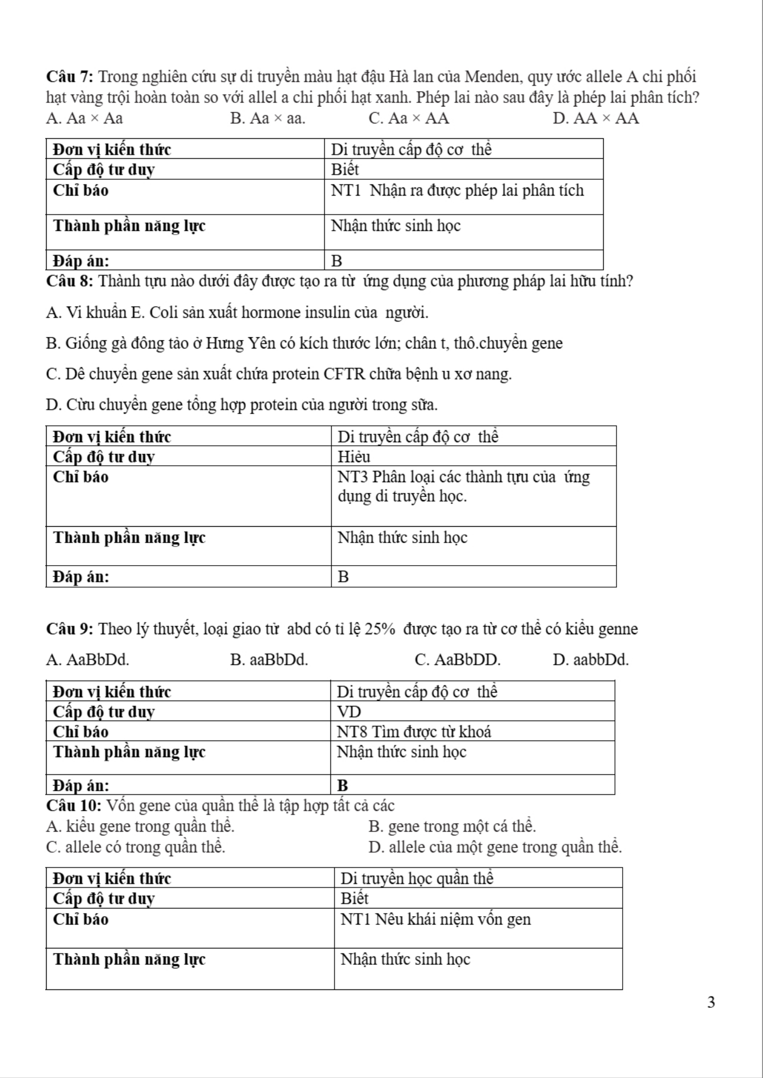 Đề thi thử tốt nghiệp môn Sinh trường Nguyễn Đình Chiểu, Huế