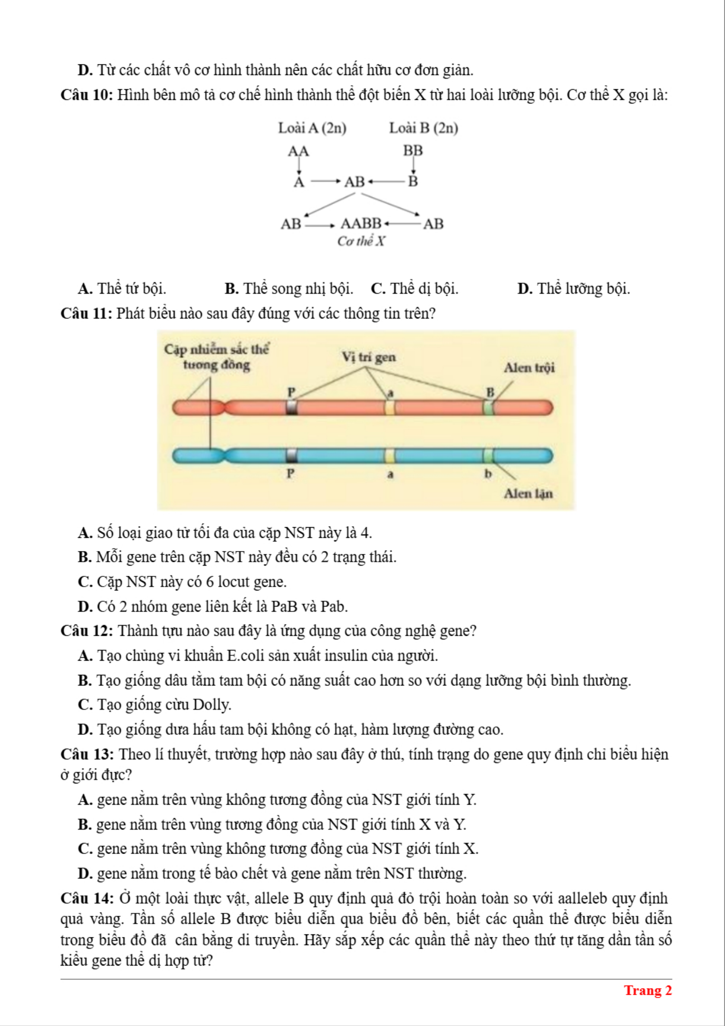 Đề thi thử tốt nghiệp môn Sinh trường Nguyễn Huệ