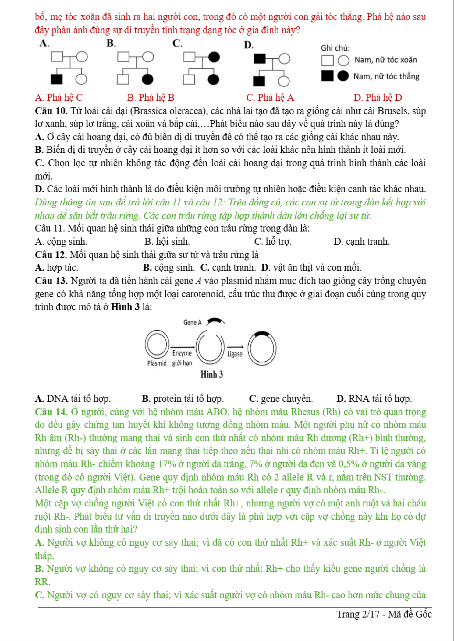 Đề thi thử tốt nghiệp môn Sinh trường Quảng Điền, Huế