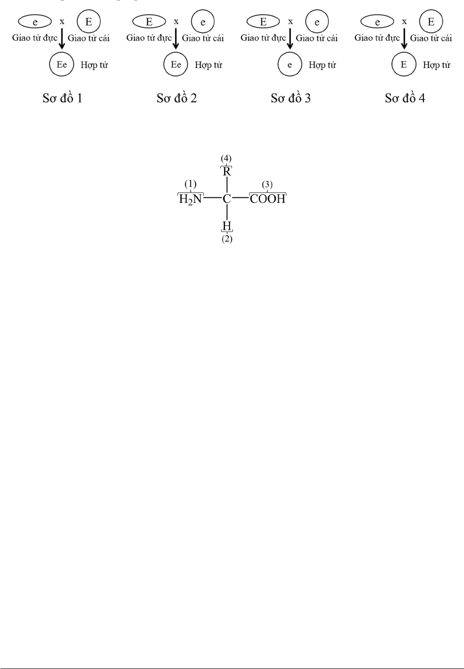 Câu 11. Hình sau mô tả cấu tạo một amino acid. Các loại amino acid trong tự nhiên khác nhau