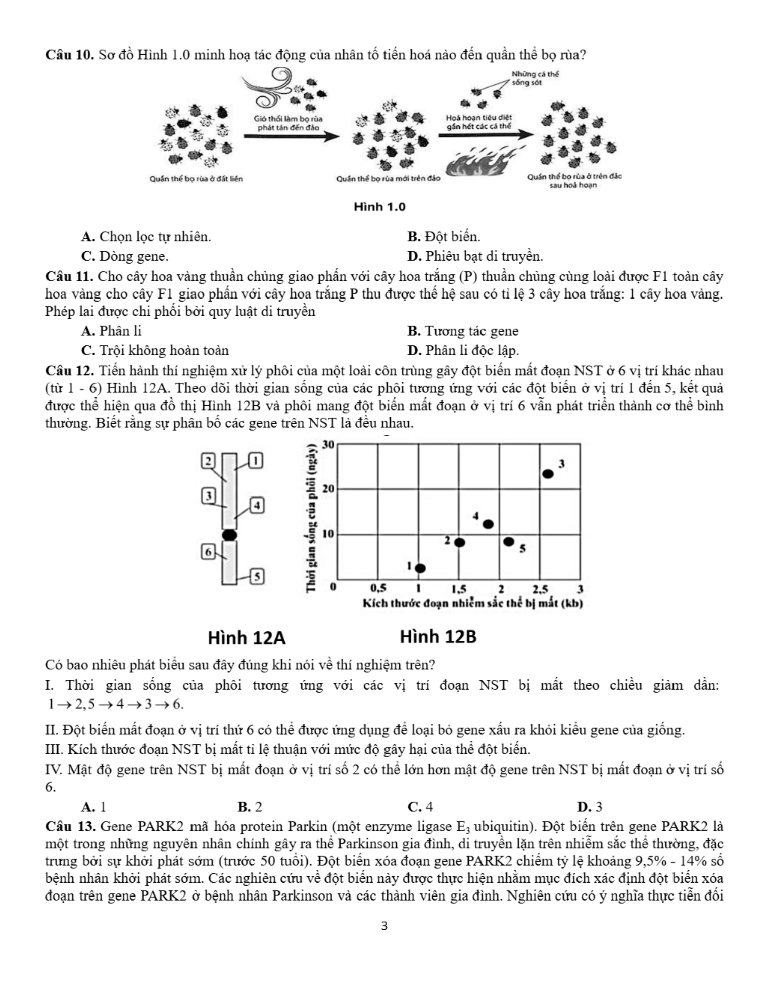 Đề thi thử tốt nghiệp THPT Quốc gia 2025 môn Sinh học trường THPT Uông Bí, Quảng Ninh có đáp án được VnDoc.com sưu tầm và xin gửi tới bạn đọc. Đề thi gồm có 18 câu hỏi trắc nghiệm nhiều phương án lựa chọn, 4 câu hỏi trắc nghiệm đúng sai và 6 câu hỏi trắc nghiệm trả lời ngắn. Thí sinh làm bài trong thời gian 50 phút. Đề có đáp án và lời giải chi tiết kèm theo. Mời các bạn cùng theo dõi chi tiết đề thi dưới đây để có thêm tài liệu ôn thi kì Thi THPT Quốc gia sắp tới nhé.