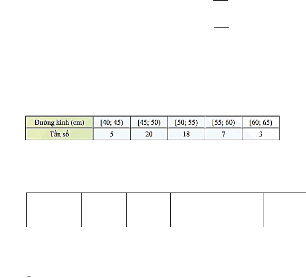 Câu 9. Một người công nhân của một nông trường thống kê lại đường kính thân gỗ của một số cây keo lá