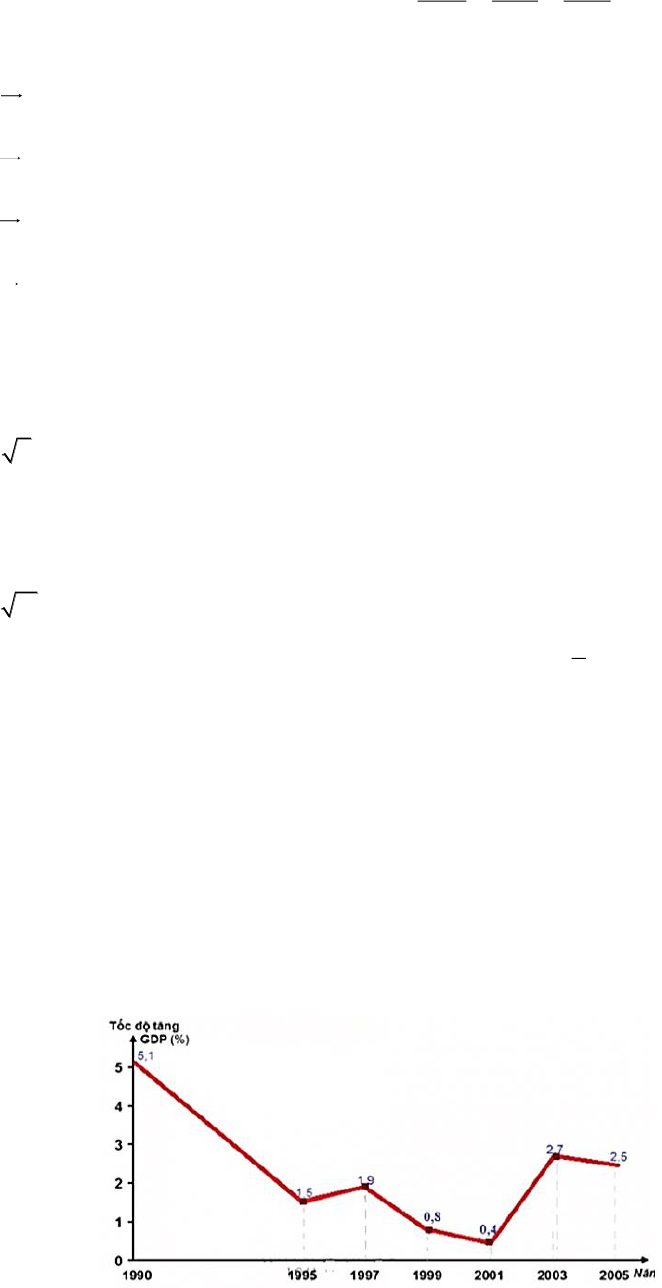Câu 8: Biểu đồ sau biểu diễn tốc độ tăng trưởng GDP của Nhật Bản trong giai đoạn 1990 đến 2005.