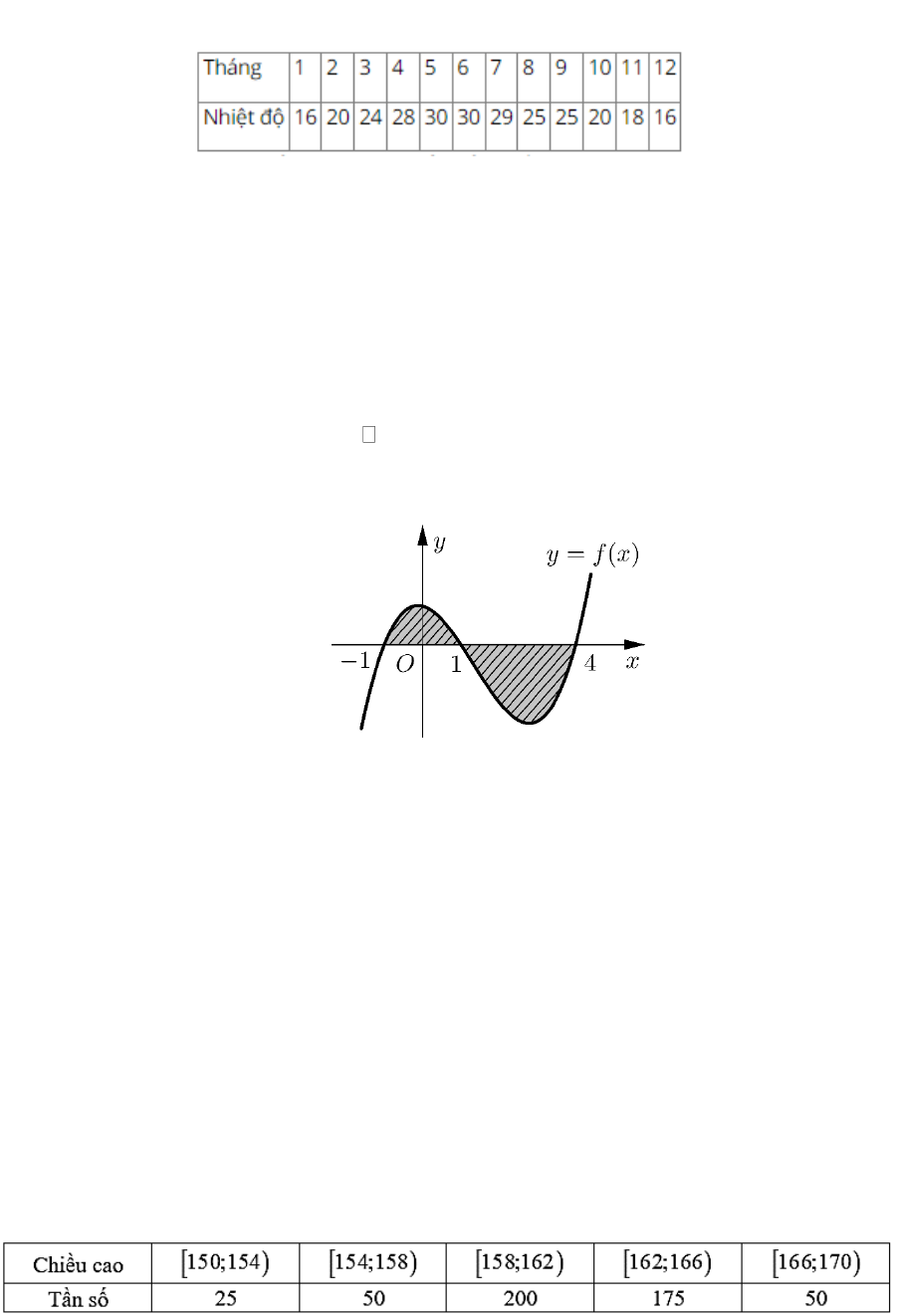 Câu 9: Nhiệt độ trung bình hàng tháng trong một năm được ghi lại trong bảng sau: