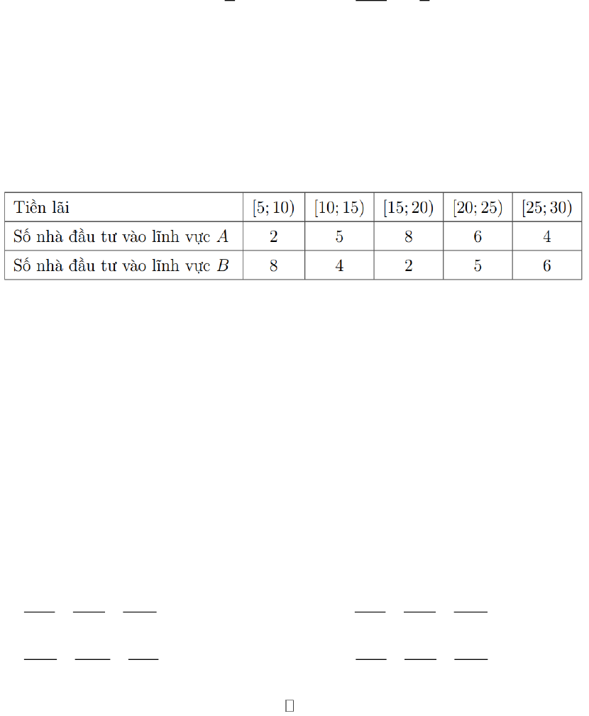 Câu 3: Người ta ghi lại tiền lãi của một số nhà đầu tư, khi đầu tư vào hai lĩnh vực