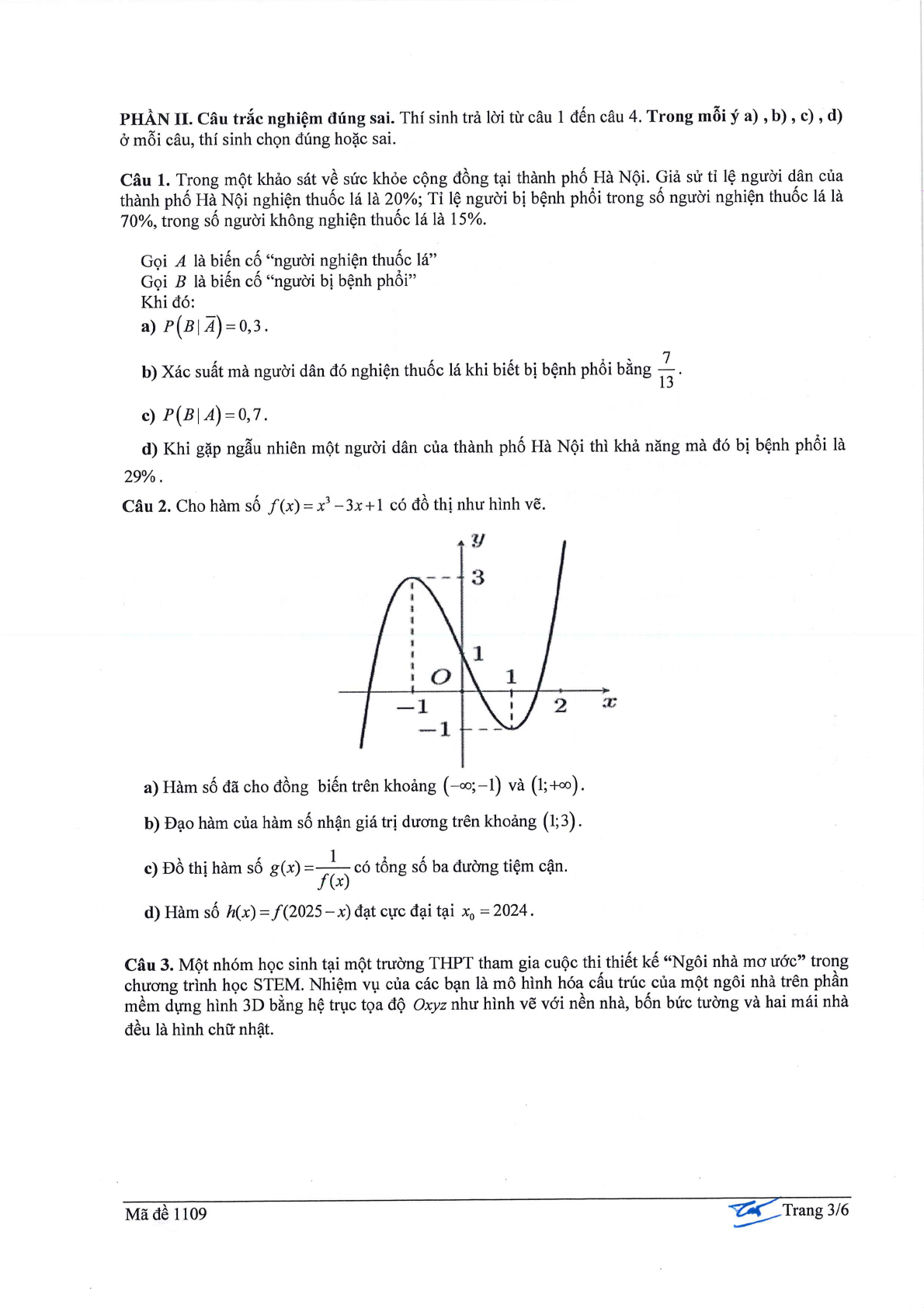 Đề thi thử tốt nghiệp THPT Quốc gia 2025 môn Toán lần 1 trường THPT Ngô Quyền, Hà Nội có đáp án được VnDoc.com tổng hợp và xin gửi tới bạn đọc cùng tham khảo. Đề thi gồm có 12 câu hỏi trắc nghiệm nhiều phương án lựa chọn, 4 câu hỏi trắc nghiệm đúng sai và 6 câu hỏi trắc nghiệm trả lời ngắn. Thí sinh làm bài trong thời gian 90 phút. Đề có đáp án và lời giải chi tiết kèm theo. Mời các bạn cùng theo dõi đề thi dưới đây để có thêm tài liệu ôn thi kì Thi THPT Quốc gia sắp tới nhé.