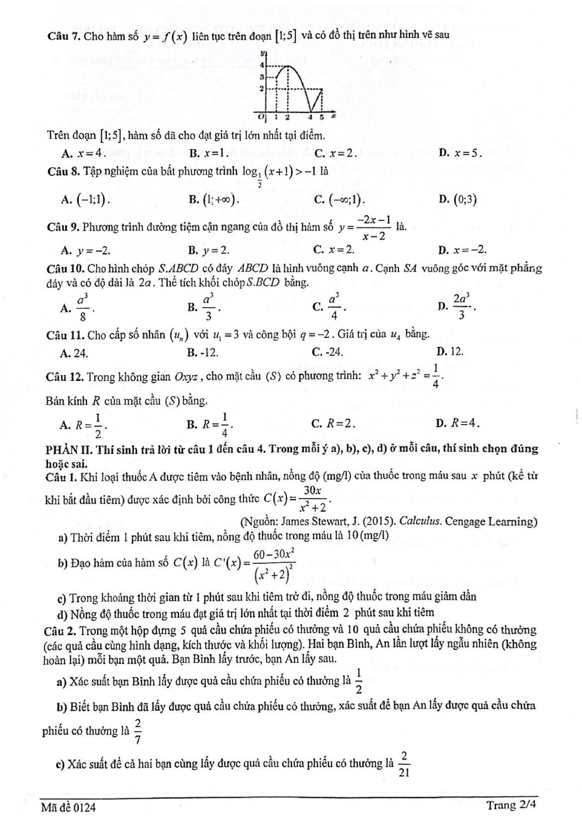VnDoc.com xin gửi tới bạn đọc bài viết Đề thi thử tốt nghiệp THPT Quốc gia 2025 môn Toán Sở GD&ĐT Lào Cai có đáp án để bạn đọc cùng tham khảo. Bài viết được tổng hợp gồm có 1 mã đề thi. Đề thi được biên soạn theo cấu trúc đề thi mới. Mỗi đề thi gồm có 12 câu hỏi trắc nghiệm nhiều phương án lựa chọn, 4 câu hỏi trắc nghiệm đúng sai và 6 câu hỏi trắc nghiệm trả lời ngắn. Thí sinh làm bài trong thời gian 90 phút. Đề có đáp án kèm theo. Mời các bạn cùng theo dõi đề thi dưới đây để có thêm tài liệu ôn Thi THPT Quốc gia sắp tới nhé.