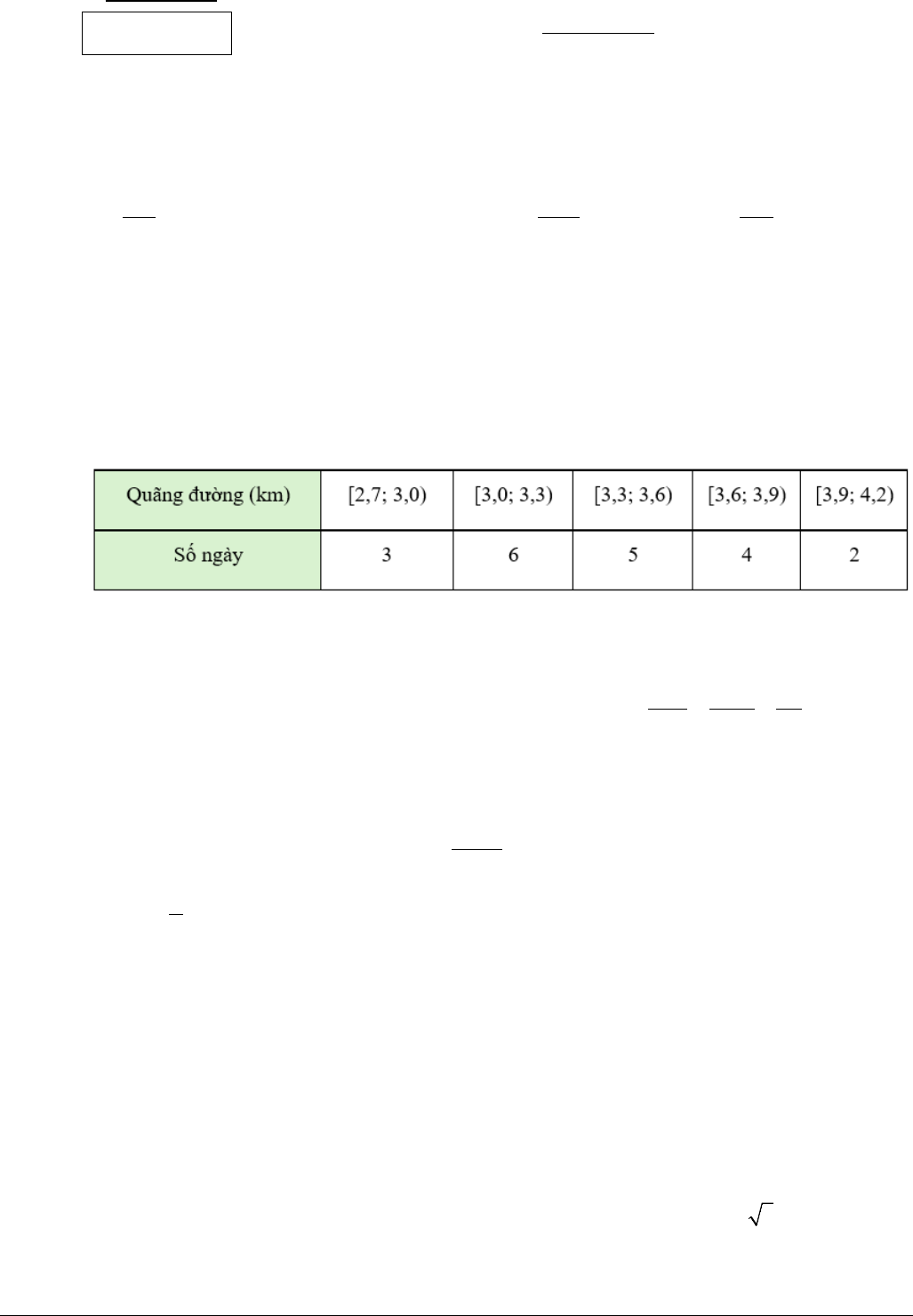 vị: km) của bác Minh trong 20 ngày được thống kê lại ở bảng sau: