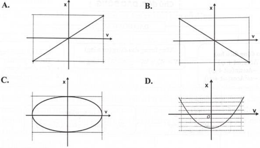 Câu 3. Gọi x và v lần lượt là li độ và vận tốc của một dao động điều hoà. Đồ thị nào sau đây biểu