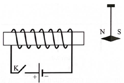 Câu 14. Cho sơ đồ mạch điện và kim nam châm được treo như Hình vẽ. Khi đóng công tắc K thì