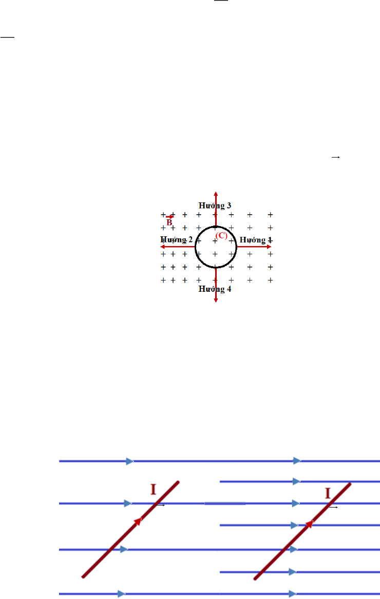 Câu 12. Cho dòng điện có cường độ I di chuyển từ trái qua phải trong một vùng không gian có từ trường