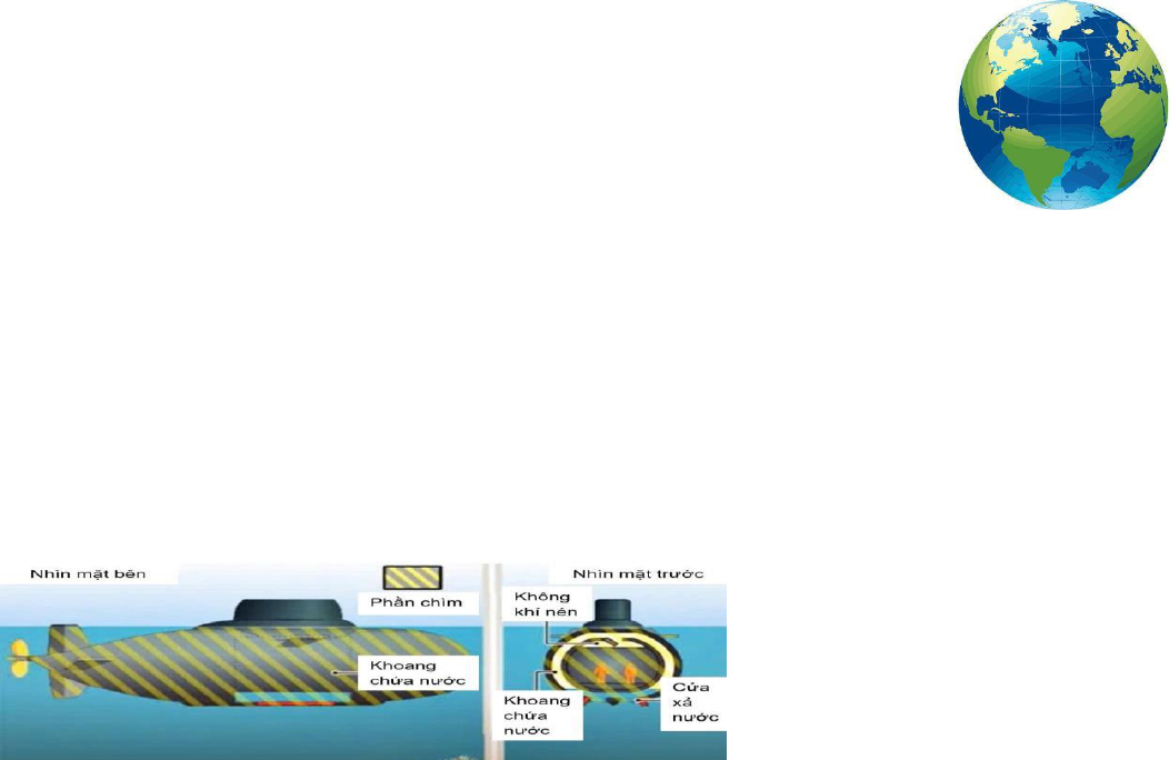 Câu 3. Để tàu nổi lên, người ta mở một bình chứa khí để đẩy nước ra khỏi khoang chứa nước. Việc làm này