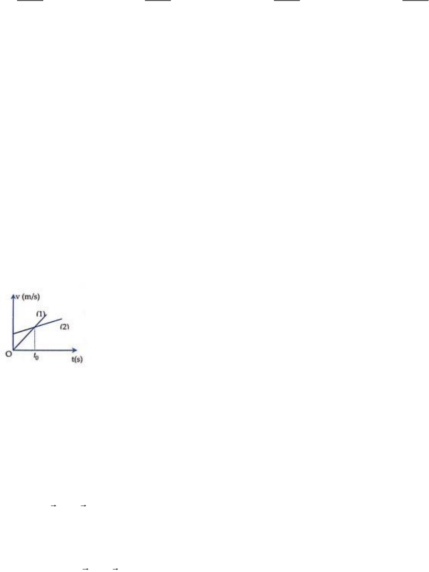 Câu 11. Hình bên là đồ thị vận tốc – thời gian của hai vật chuyển động thẳng cùng hướng, xuất phát từ cùng