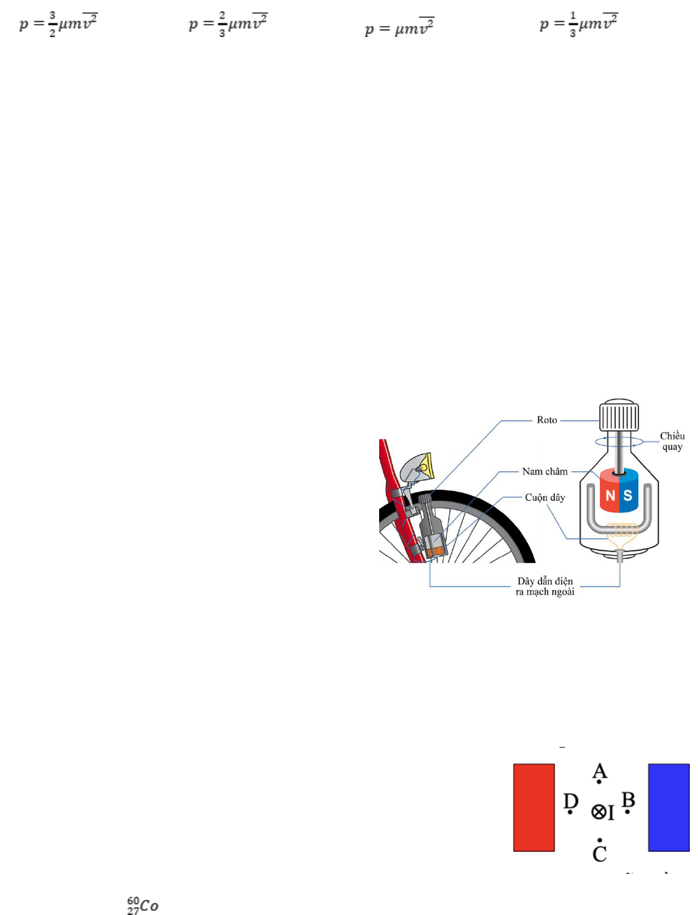 Câu 7. Hệ thức đúng của áp suất chất khí theo mô hình động học phân tử với μ là mật độ phân tử khí