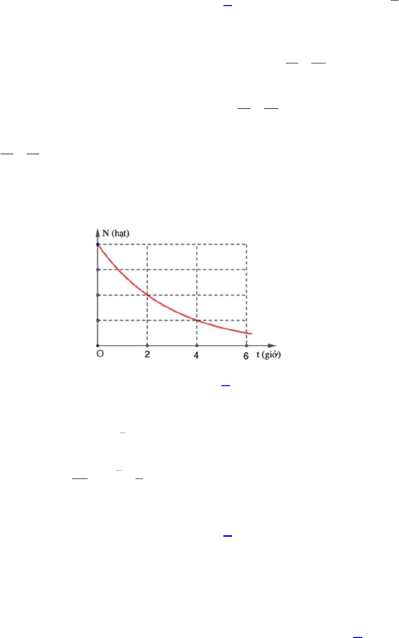 Câu 99. Hình bên là đồ thị biểu diễn số hạt nhân còn lại của một chất phóng xạ theo thời gian t.