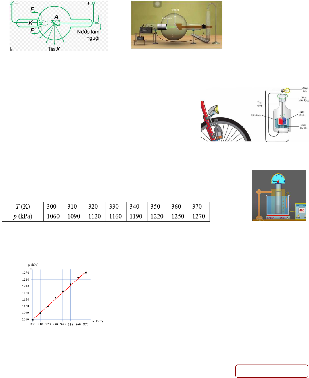 Câu 1. Hình ảnh dưới đây là ống phát tia X, khi sợi nung FF' được đốt nóng, electron bức xạ nhiệt ra khỏi