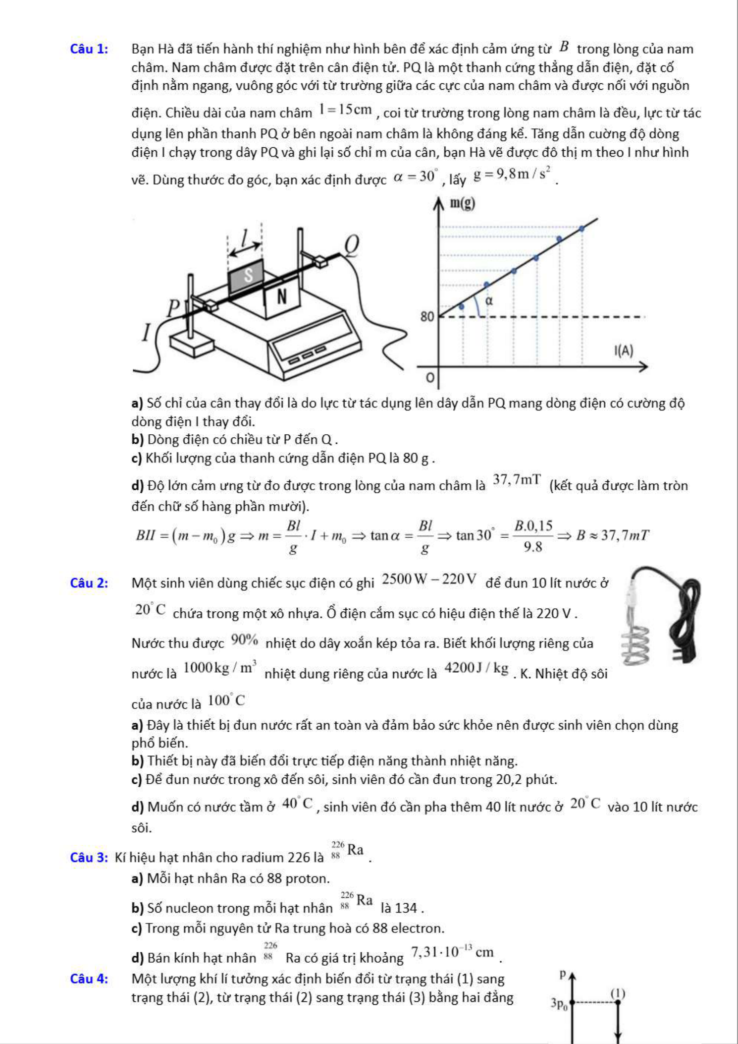 Đề thi thử tốt nghiệp môn Lý trường Cẩm Xuyên, Hà Tĩnh