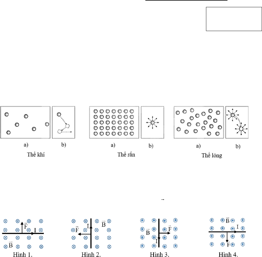 Câu 2: Hình vẽ sau mô tả khoảng cách và sự sắp xếp (a), chuyển động (b) của các phân tử ở các thể khác nhau.