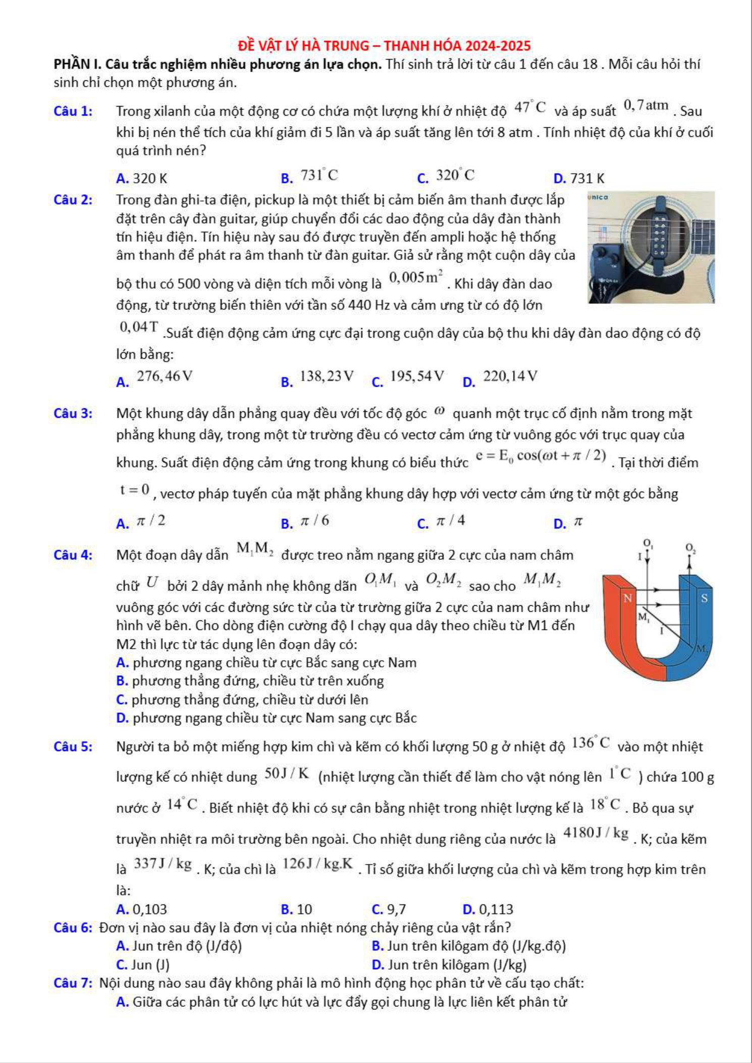 Đề thi thử tốt nghiệp THPT 2025 môn Vật lí trường THPT Hà Trung, Thanh Hóa