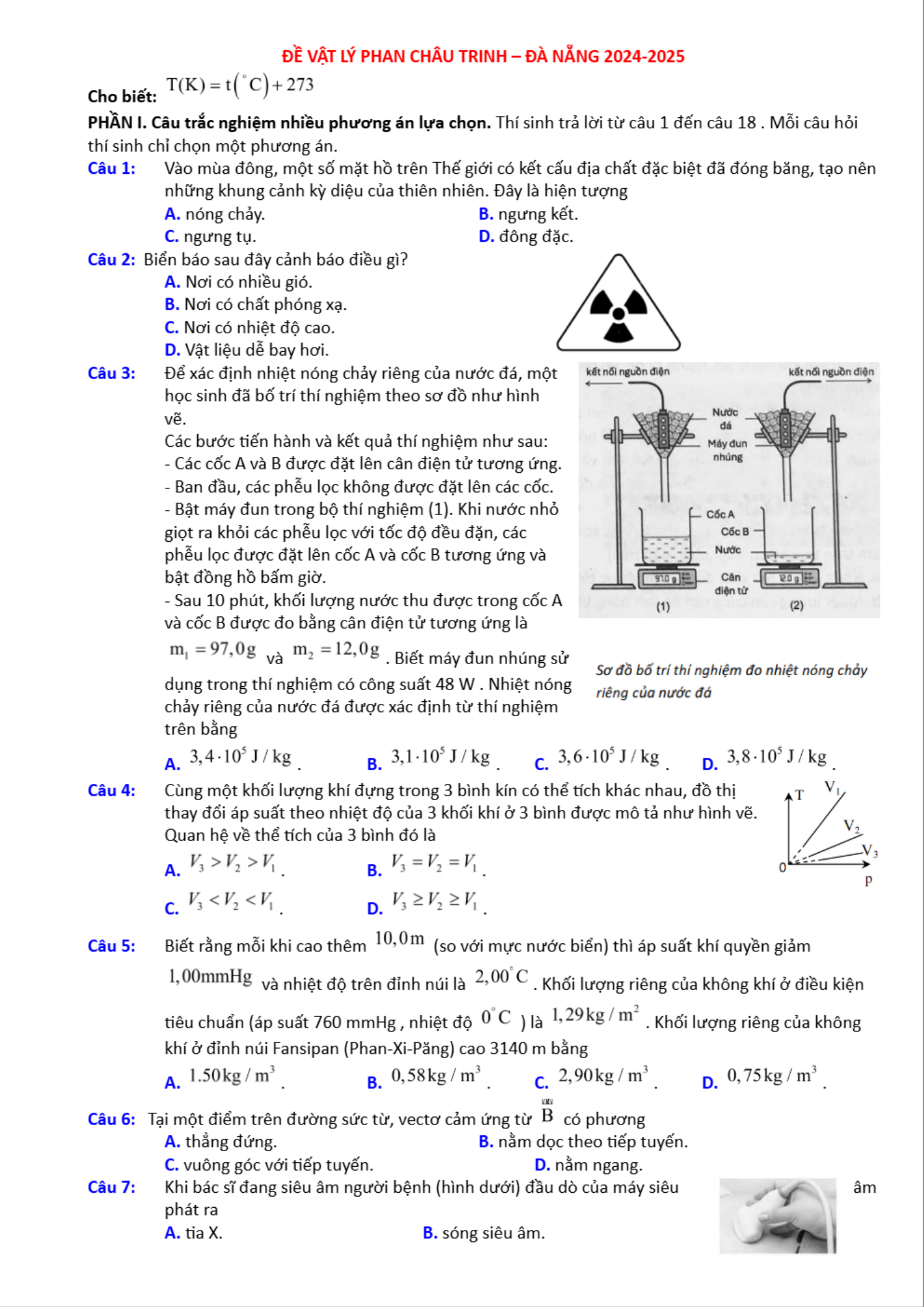 Đề thi thử tốt nghiệp THPT 2025 môn Vật lí trường THPT Phan Châu Trinh, Đà Nẵng