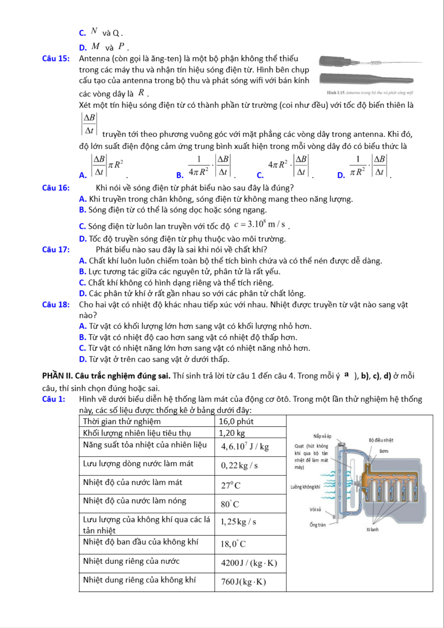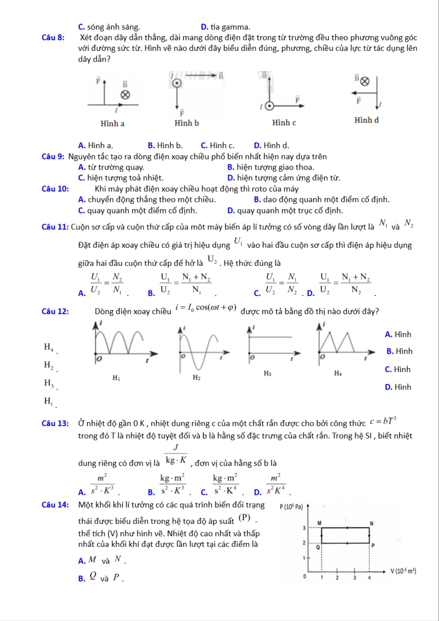 Đề thi thử tốt nghiệp môn Lý trường Phan Châu Trinh, Đà Nẵng