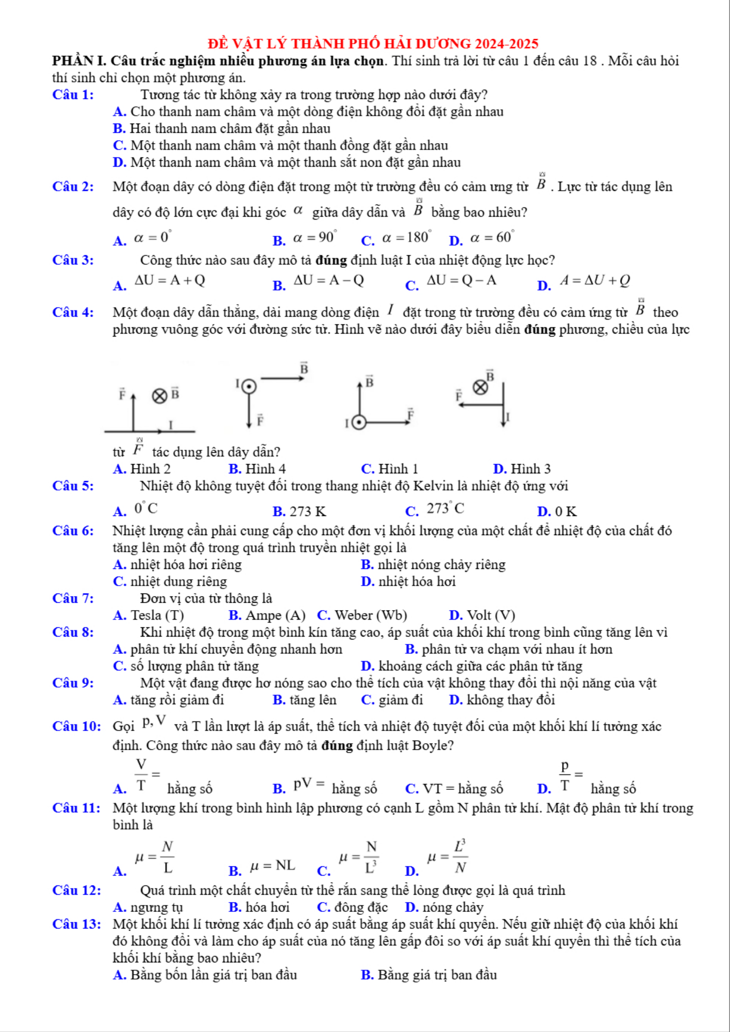Đề thi thử tốt nghiệp THPT 2025 môn Vật lí trường THPT thành phố Hải Dương