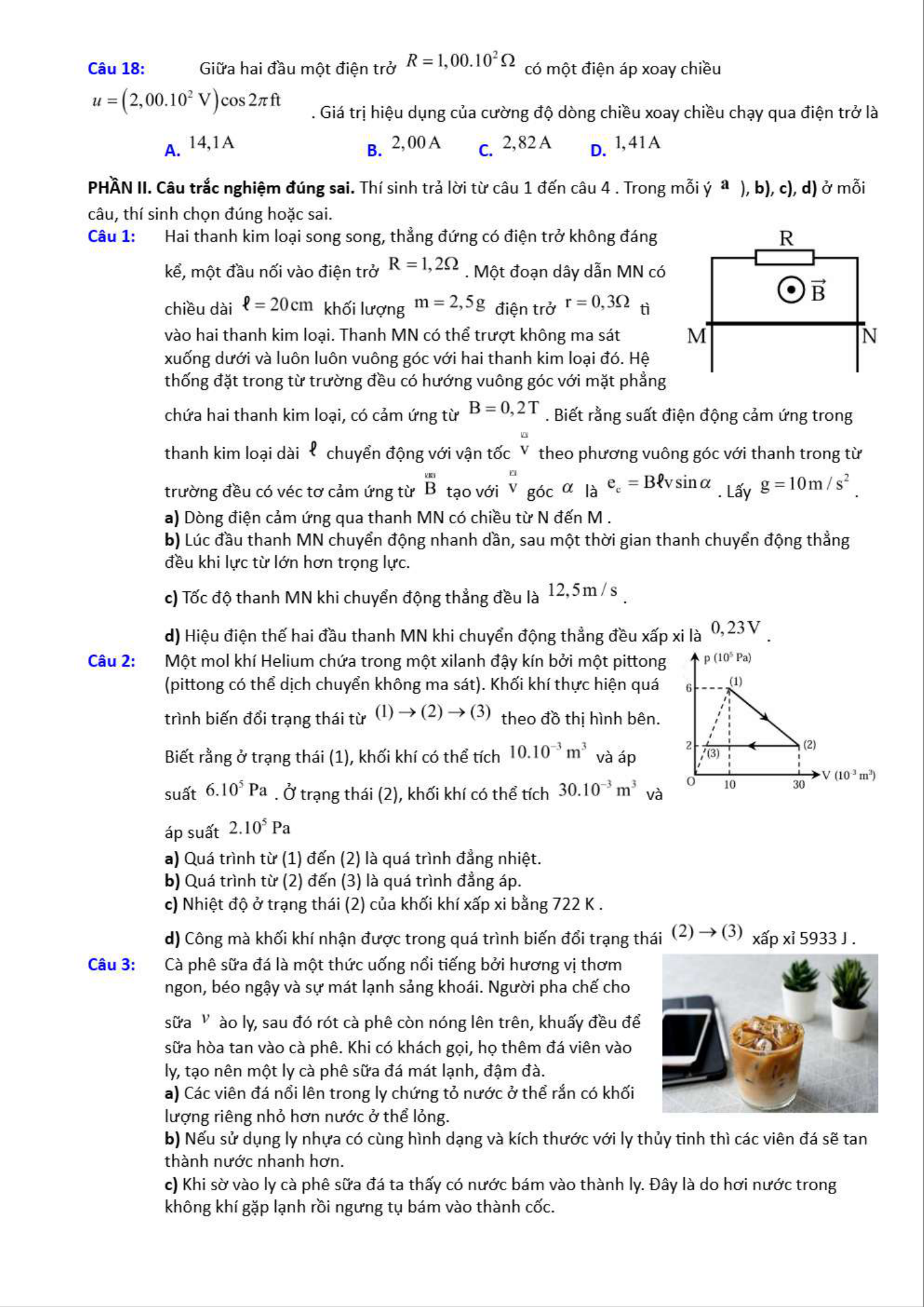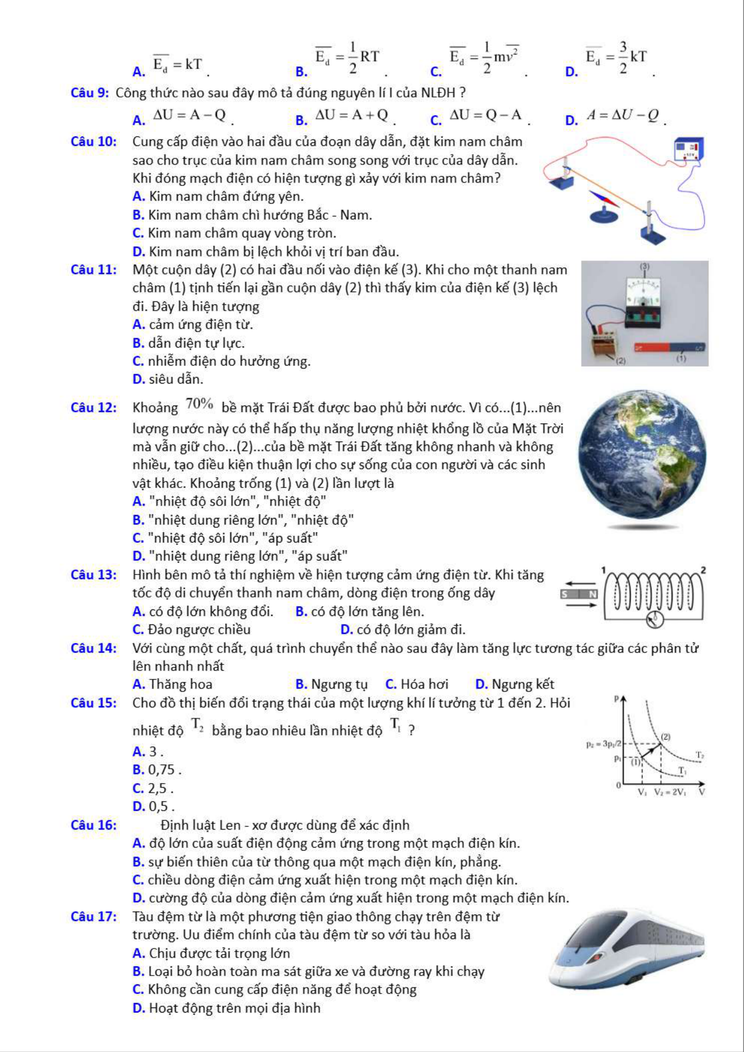 Để giúp bạn đọc có thêm tài liệu ôn thi kì Thi THPT Quốc gia sắp tới, VnDoc.com xin gửi tới bạn đọc bài viết Đề thi thử tốt nghiệp THPT Quốc gia 2025 môn Vật lí trường THPT Triệu Quang Phục, Hưng Yên có đáp án để bạn đọc cùng tham khảo. Đề thi gồm có 18 câu hỏi trắc nghiệm nhiều phương án lựa chọn, 4 câu hỏi trắc nghiệm đúng sai và 6 câu hỏi trắc nghiệm trả lời ngắn. Thí sinh làm bài trong thời gian 50 phút. Đề có đáp án và lời giải chi tiết kèm theo. Mời các bạn cùng theo dõi đề thi dưới đây.