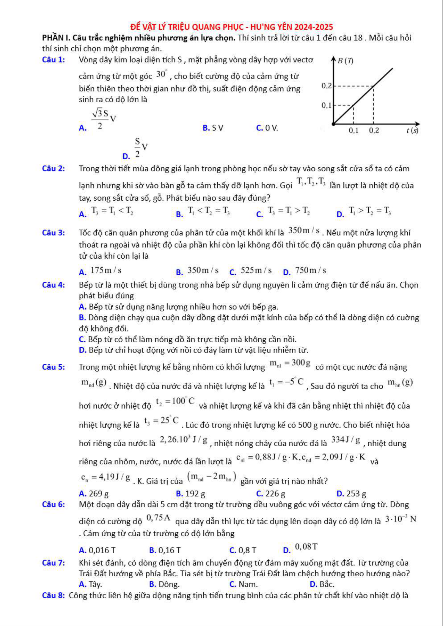 Đề thi thử tốt nghiệp THPT 2025 môn Vật lí trường THPT Triệu Quang Phục, Hưng Yên