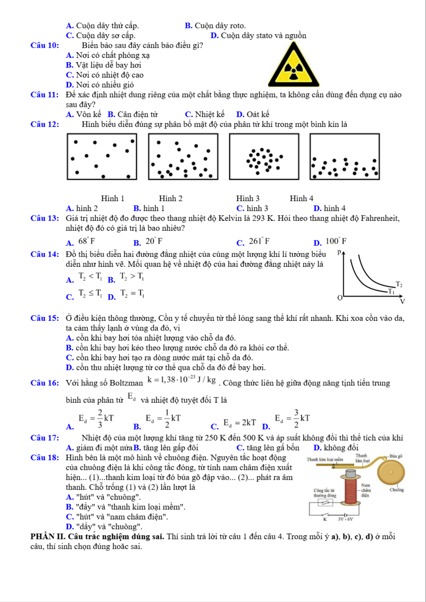 Đề thi thử tốt nghiệp môn Lý trường Xuân Phương, Hà Nội
