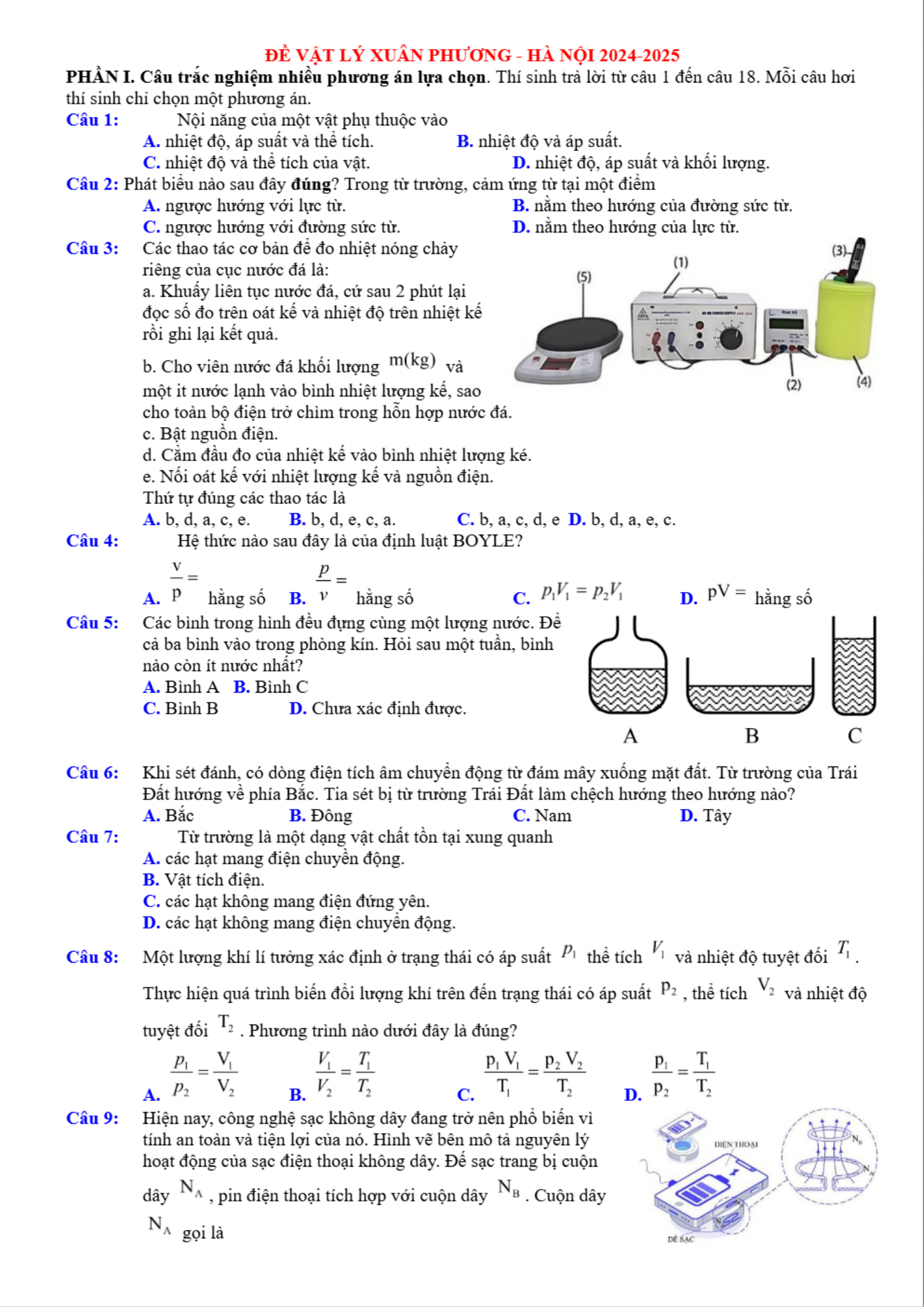 Đề thi thử tốt nghiệp THPT 2025 môn Vật lí trường THPT Xuân Phương, Hà Nội