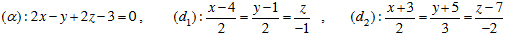 (d1): { x = 2 - 2t; y = 3; z = t và