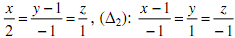 1) Chứng minh Δ1 và Δ2 chéo nhau, tính độ dài đoạn vuông góc chung của Δ1 và Δ2.