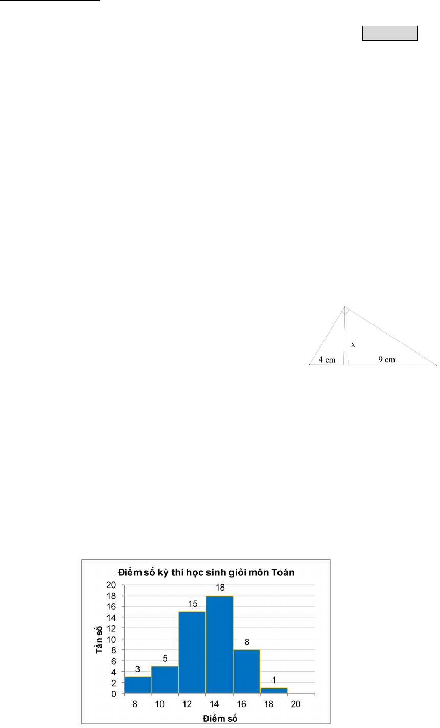 Câu 9. Trong một kỳ thi học sinh giỏi Toán (thang điểm 20) của 50 học sinh, kết quả được cho bởi