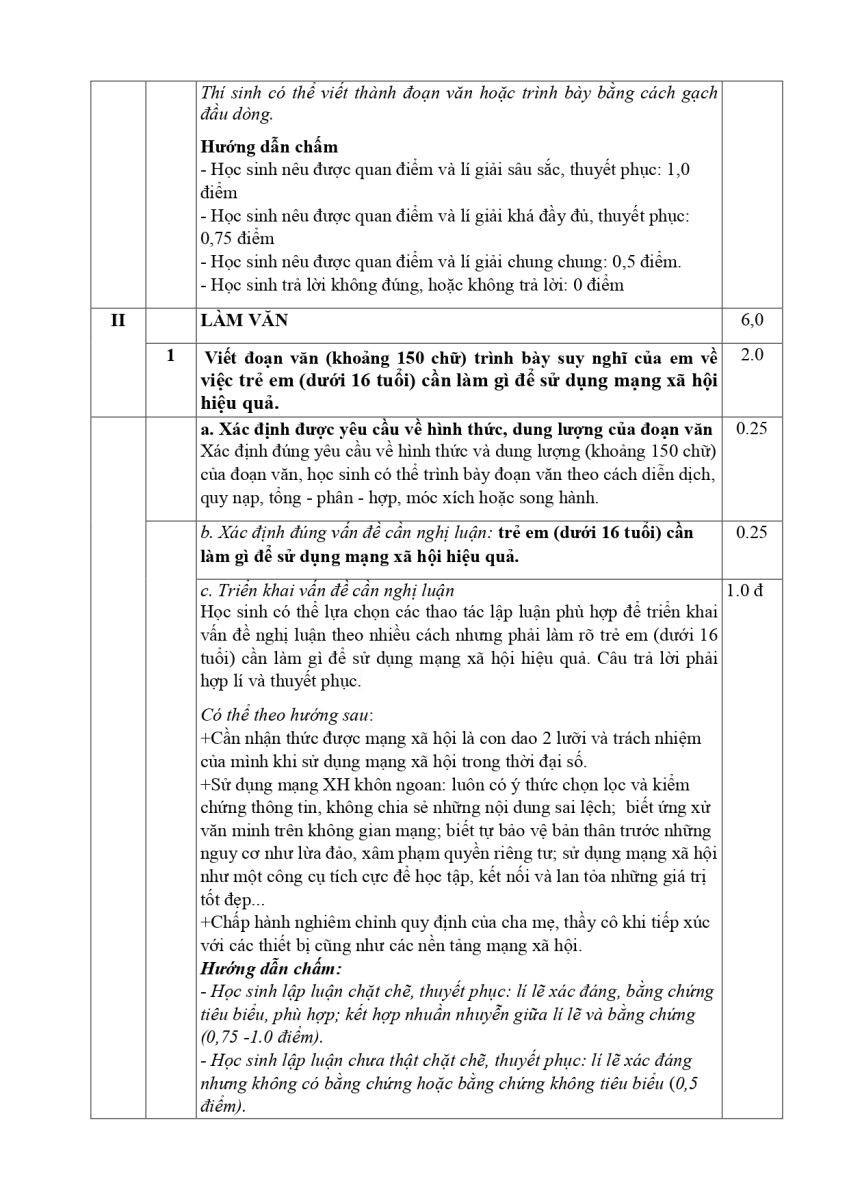Đề minh họa thi vào 10 môn Văn có đáp án