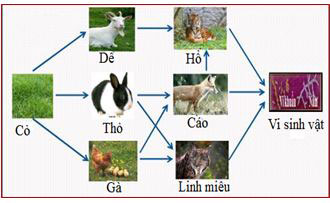 (10) Cỏ -> gà -> mèo rừng -> cáo -> hổ