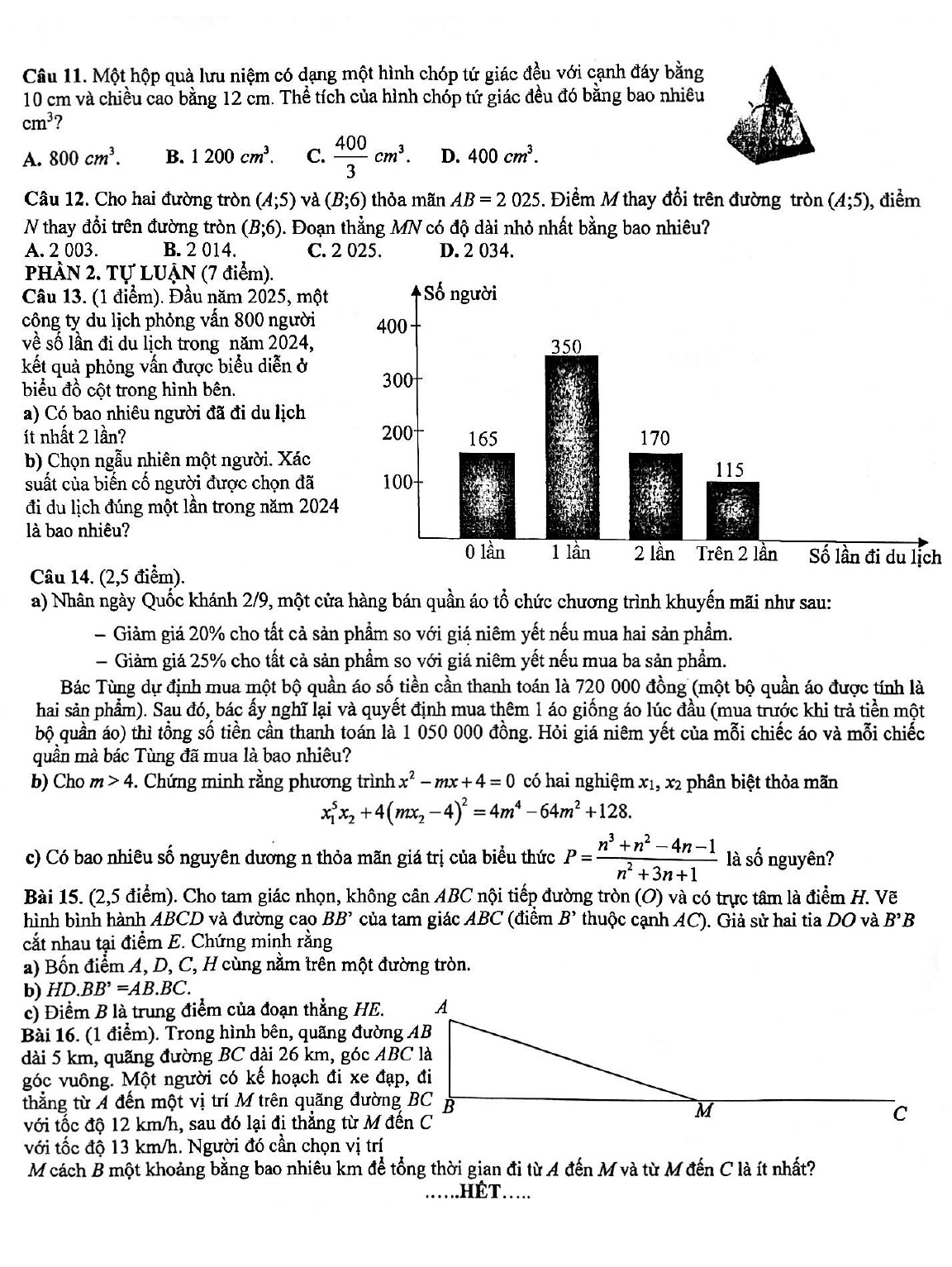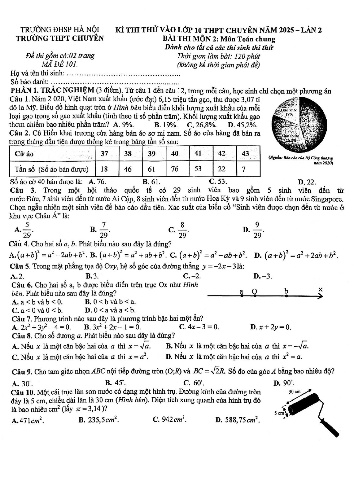 Đề thi thử vào lớp 10 môn Toán (chung) năm 2025 lần 2 trường chuyên ĐHSP Hà Nội