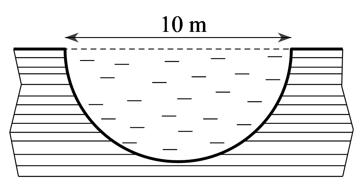 Câu 5 (0,5 điểm). Để phòng tránh trẻ em bị đuối nước, người ta quyết định dùng đất để lấp một cái ao dạng nửa hình cầu, mặt ao hình tròn có đường kính 10m.