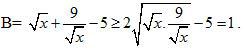 Dấu bằng xảy ra khi √x = 9/√x. Vậy Min B = 1 ↔ x = 9.