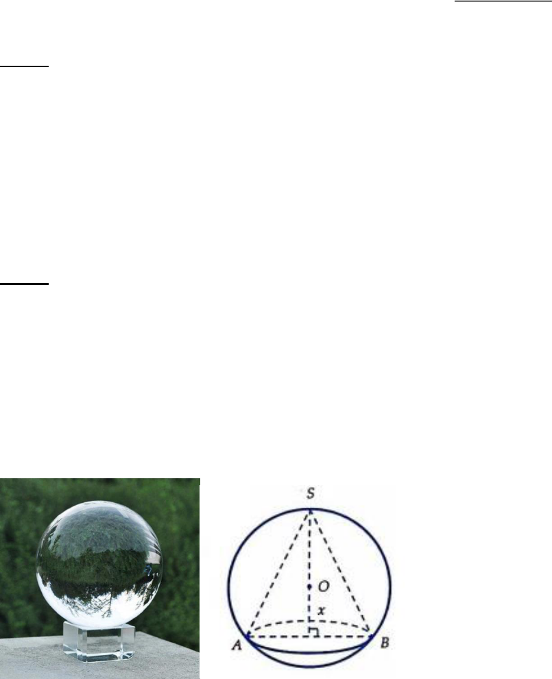 b) Tính chiều cao của hình nón để thể tích hình nón trong hình cầu nói trên là