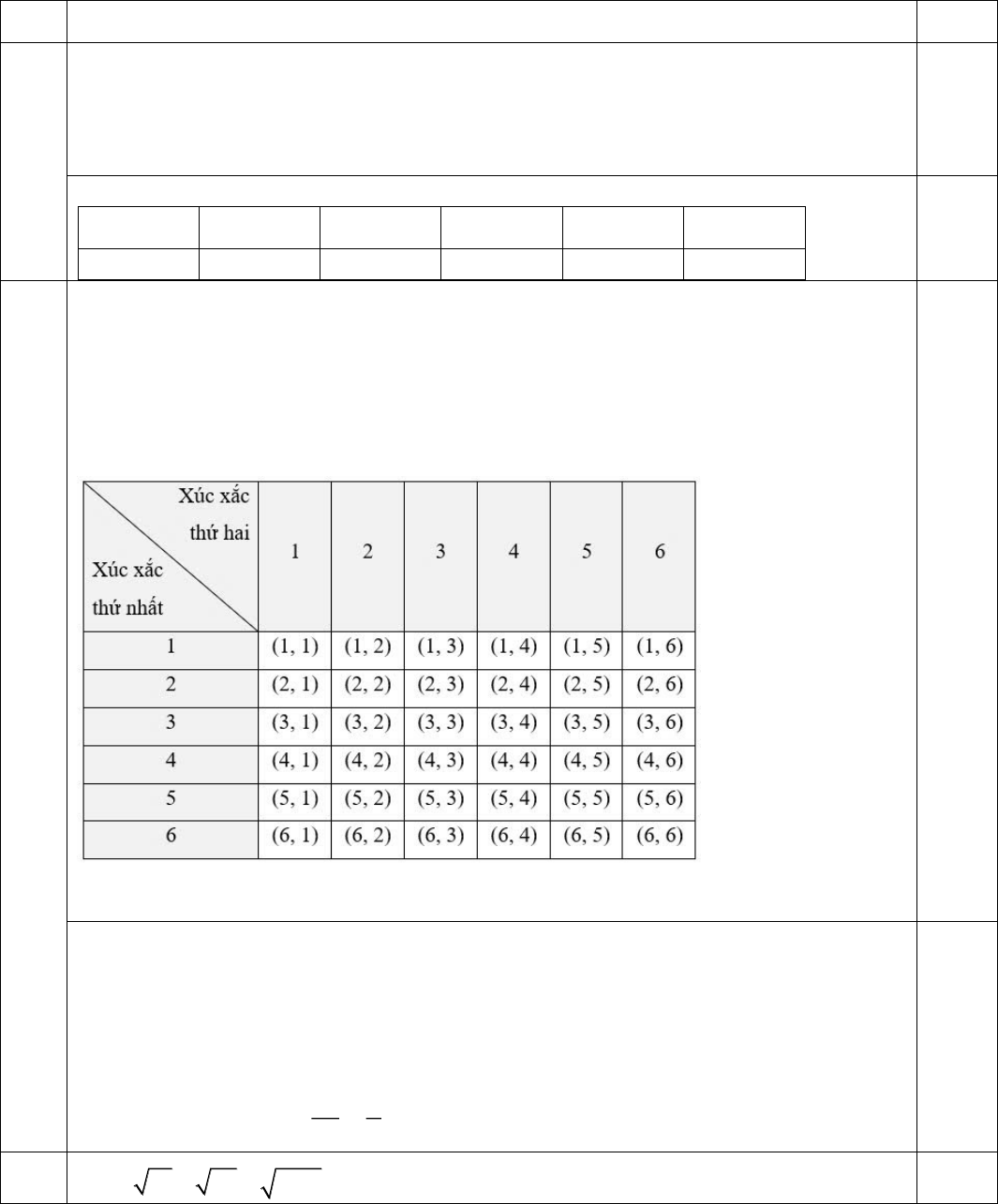 có 36 phần t nên php th có 36 kết quả có thể và do 2 con xúc xắc
