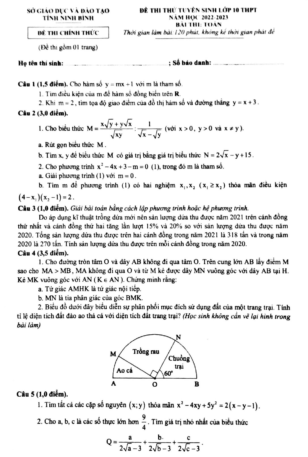 Đề thi thử vào lớp 10 môn Toán Sở GD&ĐT Ninh Bình năm học 2022-2023