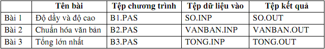 + Dữ liệu vào: từ tệp văn bản VANBAN.INP, gồm nhiều dòng, mỗi dòng không quá 255 kí tự.